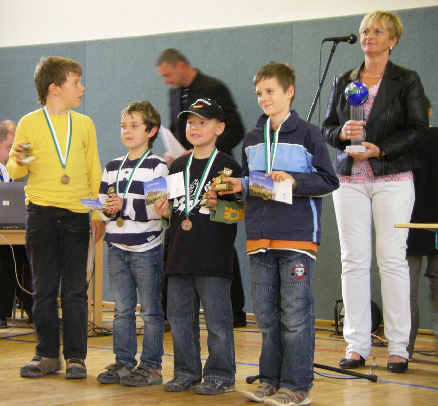 Zur Siegerehrung in der Turnhalle fanden sich ca. 200 Kinder und Eltern ein. Die Kinder freuten sich über die Medaillen und Preise. Die Eltern waren stolz, wie wacker sich die kleinen Helden schlugen. Die Spannung schlug in rasende Begeisterung um, als die Grundschule Neumark als Pokalsieger ausgerufen wurde. Letztes Jahr verfehlte die Grundschule Neumark mit 3 Spielern einen Platz auf dem Podest nur knapp. Dieses Jahr bewiesen die Spieler aus Neumark ihre Stärke und gewannen vor der GS Karl-Marx Plauen und der GS „Am Park“ Lengenfeld verdient den Pokal.